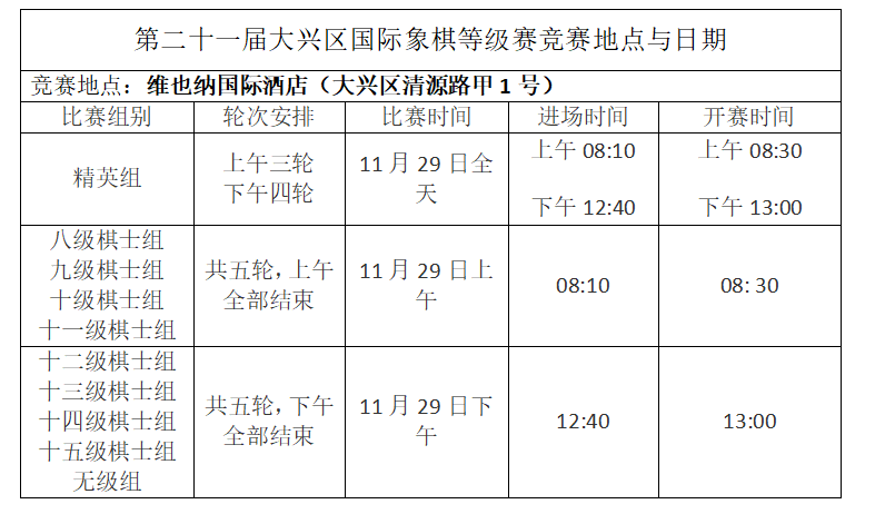 2025年11月29日第二十一届大兴区国际象棋等级赛竞赛规程