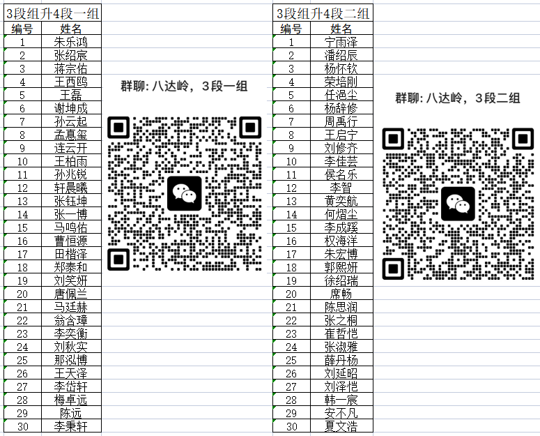 2023年11月11-12日首届“八达岭杯”北京市业余围棋段位赛【分组名单】