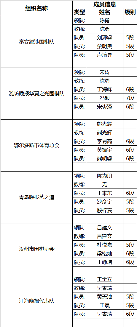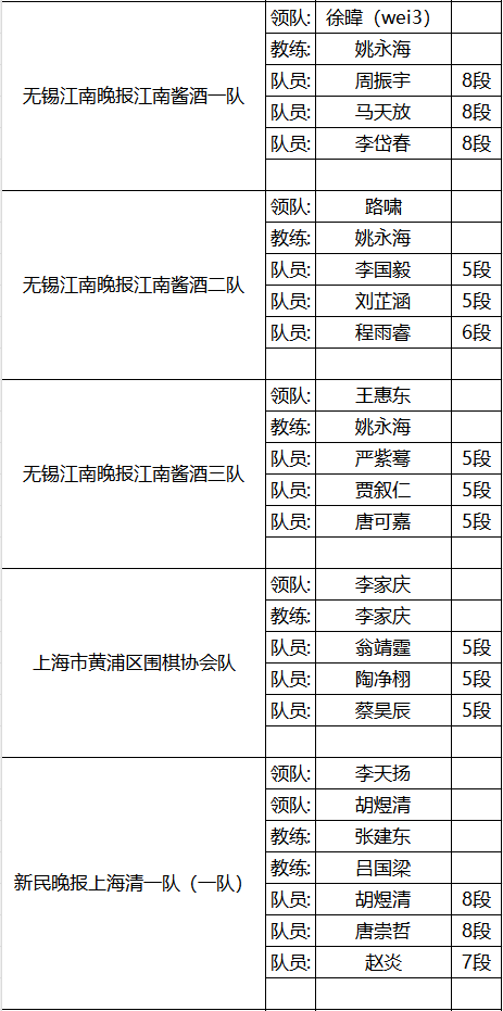 1、以下报名信息,请各队自行核对信息是否有误,如需修改,请在1月2日下班前发送至微信13120142669。
