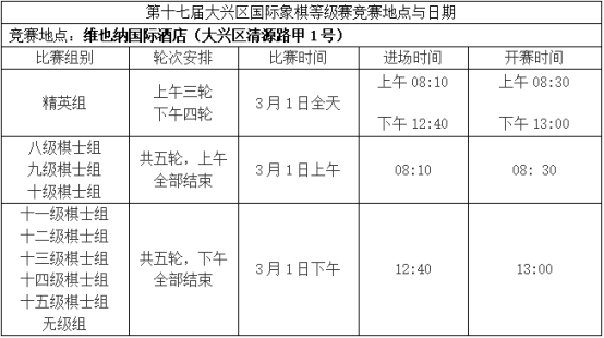 2025年3月1日第十七届大兴区国际象棋等级赛【赛事规程】