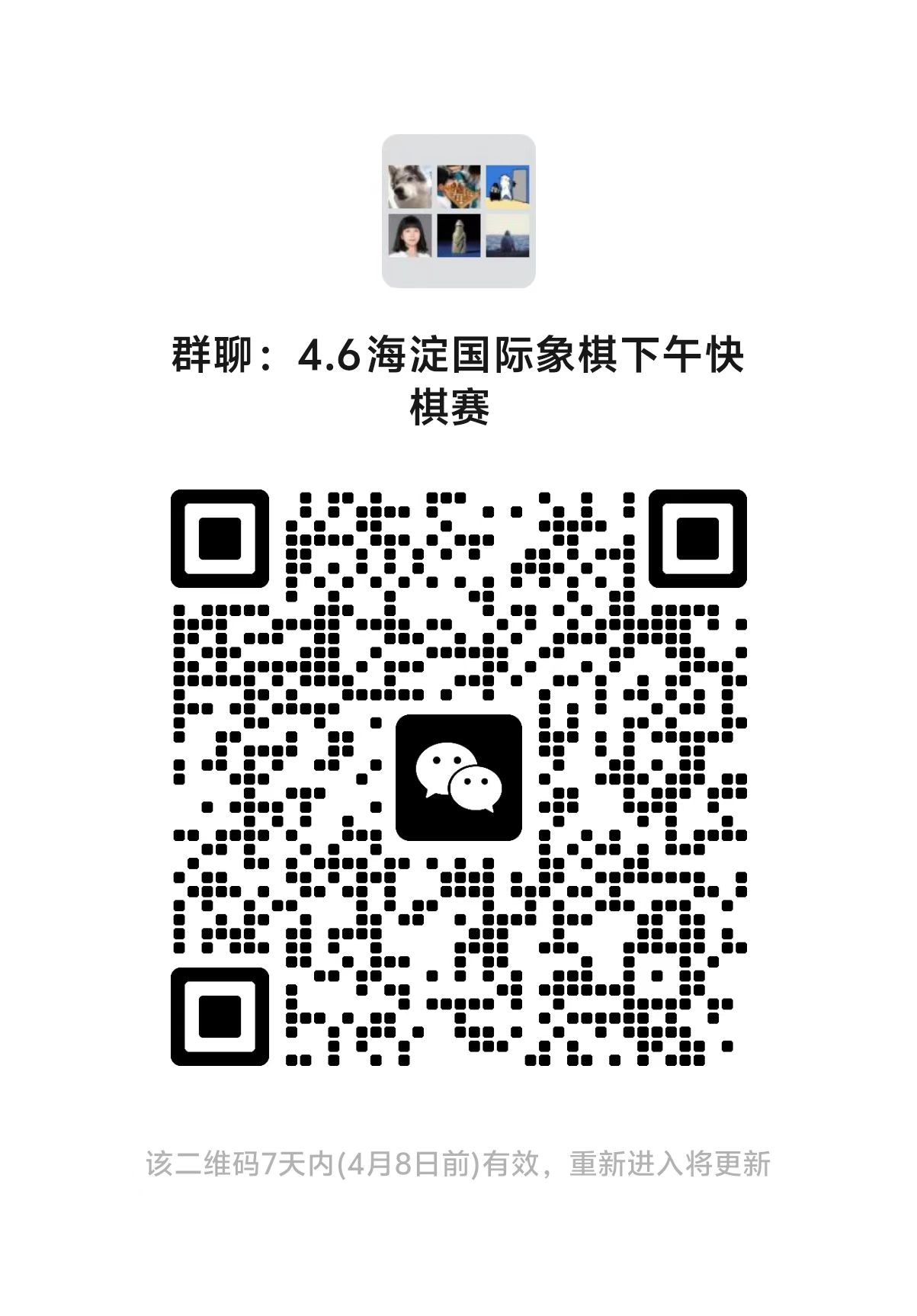 【进群二维码】2025年4月6日“智慧海淀”杯国际象棋快棋赛