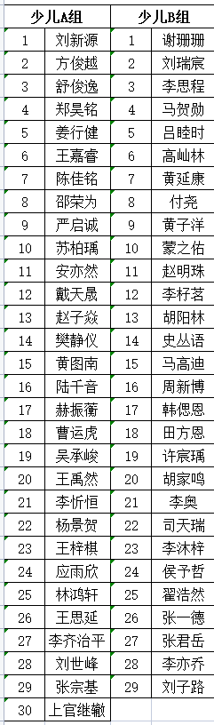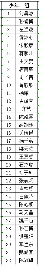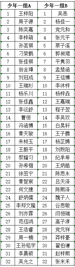 2、按年龄段分组,共分成六个组:少儿A组、少儿B组、少年一组A、少年一组B、少年二组和成人组。每组不超过32人。各组均进行六轮比赛,使用云蛇编排软件,电脑积分编排。