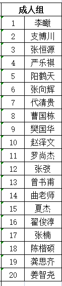 1、本次比赛个人名次采用“比较积分区分名次”方法,积分高者名次列前。若积分相同,则比较对手分,对手分高者列前。