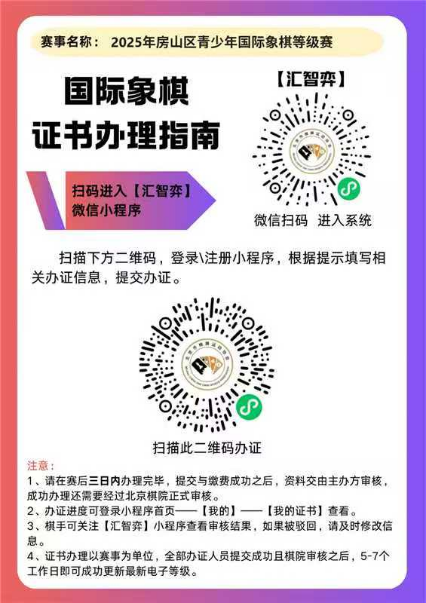 办证时间:赛事结束后2-4周,纸质证书邮寄时间根据北京市棋院相关规定进行邮寄。