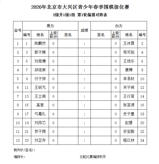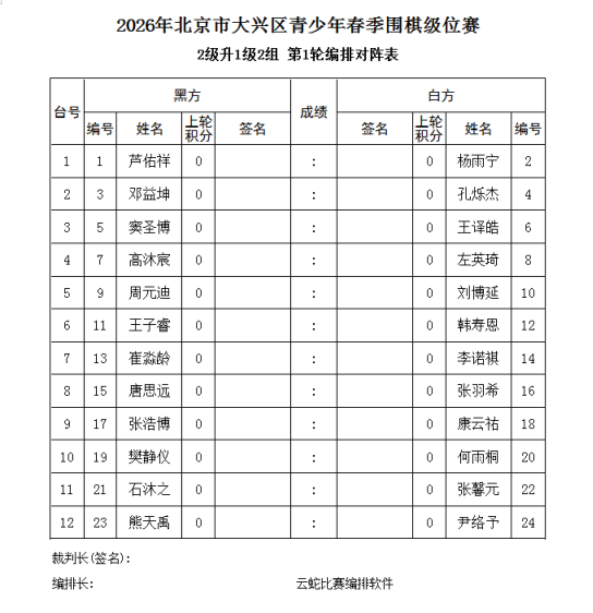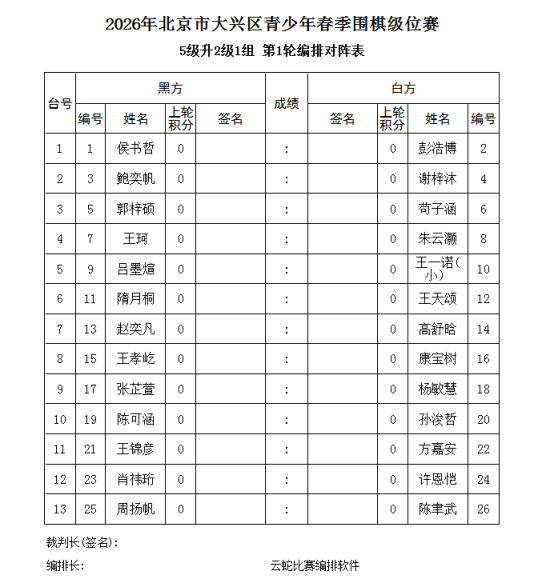 2026年2月7-8日大兴区业余围棋级位【补充通知】
