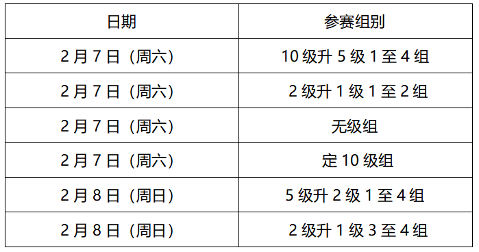 【2级升1级】2月7日(周六)比赛: