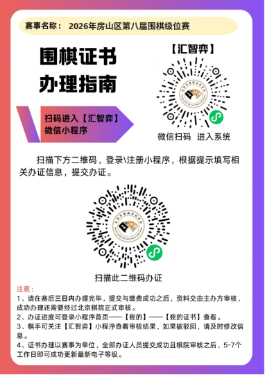【分组通知】【补充规定】2026年3月29日第八届围棋级位赛(房山)